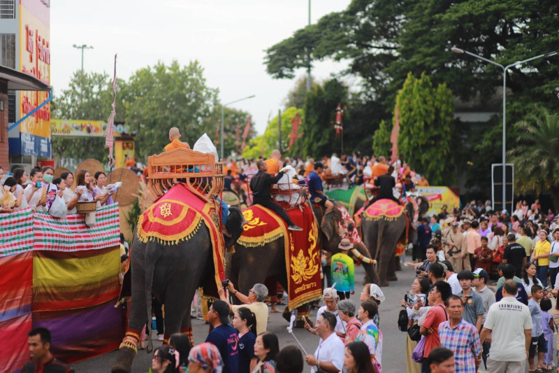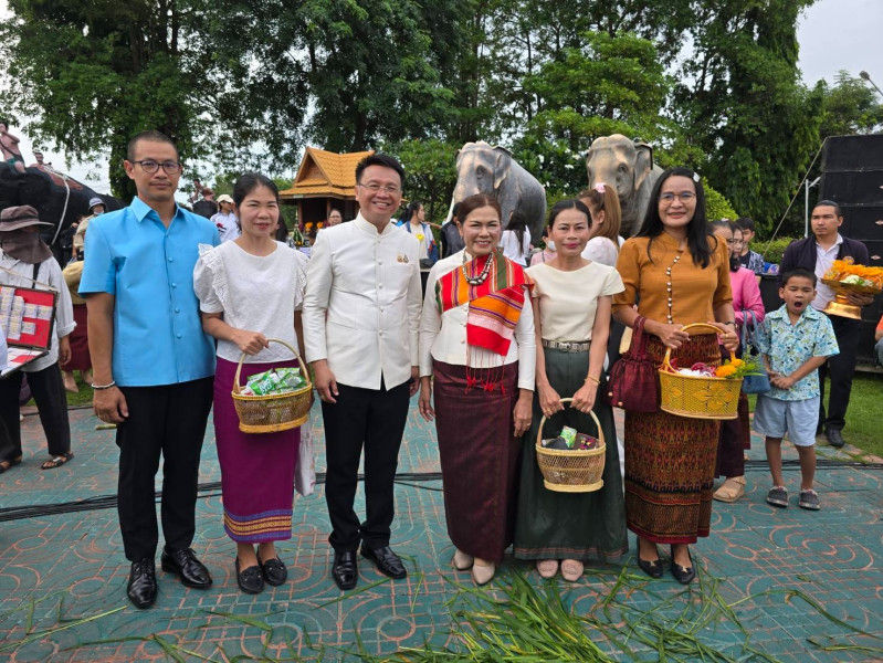 วันที่ 10 กรกฎาคม 2568 เวลา 06.30 น. นายชำนาญ ชื่นตา ผู้ว่าราชการจังหวัดสุรินทร์ เป็นประธานพิธีทำบุญตักบาตรบนหลังช้าง เพื่อสืบทอดวัฒนธรรมประเพณีอันดีงามของจังหวัดสุรินทร์ ส่งเสริมการท่องเที่ยวจังหวัดสุรินทร์ และประชาสัมพันธ์ให้นักเที่ยวชาวไทย รวมทั้งชาวต่างชาติได้ทราบ ทั้งนี้ กลุ่มจัดตั้งและส่งเสริมสหกรณ์เข้าร่วมพิธีดังกล่าว ณ บริเวณอนุเสาวรีย์พระยาสุรินทรภักดีศรีณรงค์จางวาง ตำบลในเมือง อำเภอเมืองสุรินทร์ จังหวัดสุรินทร์