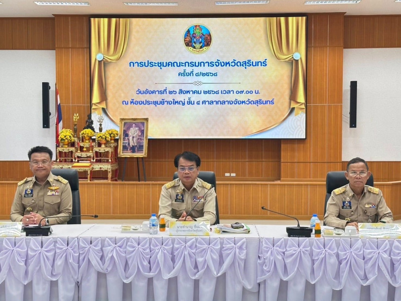 วันที่ 26 สิงหาคม 2568 เวลา 09.00 น. นายทวีภัทร เหล่าบรรเทา สหกรณ์จังหวัดสุรินทร์ มอบหมายให้ นางสาวจิราพร เกลียวทอง นักจัดการงานทั่วไปชำนาญการ ร่วมประชุมคณะกรมการจังหวัดสุรินทร์ ครั้งที่ 8/2568 เพื่อรับทราบเรื่องนโยบายสำคัญของรัฐบาลและกระทรวงต่าง ๆ รวมถึงผลการดำเนินการในจังหวัดสุรินทร์ การประชาสัมพันธ์กิจกรรมของจังหวัดสุรินทร์ และการรับฟังข้อเสนอแนะของส่วนราชการ หน่วยงานในจังหวัดสุรินทร์ ณ ห้องประชุมช้างใหญ่ ชั้น 4 ศาลากลางจังหวัดสุรินทร์ อำเภอเมืองสุรินทร์ จังหวัดสุรินทร์