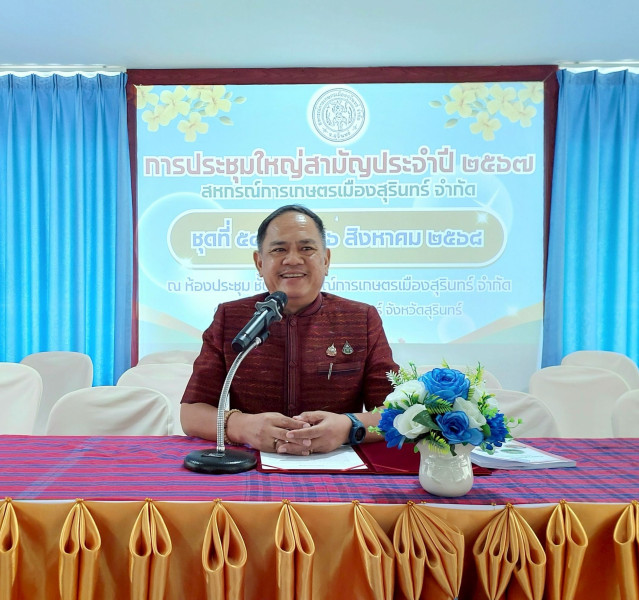 วันที่ 26 สิงหาคม 2568 เวลา 09.00 น. นายทวีภัทร เหล่าบรรเทา สหกรณ์จังหวัดสุรินทร์ ประธานในพิธีเปิดการประชุมใหญ่สามัญประจำปี 2567 สหกรณ์การเกษตรเมืองสุรินทร์ จำกัด พร้อมด้วยนางสาวพยอม พาพาน ผู้อำนวยการกลุ่มส่งเสริมสหกรณ์ 1 และคณะ โดยมี ผู้แทนสมาชิกเข้าประชุม 123 คน จากผู้แทนสมาชิกทั้งหมด 155 คน ประธานในพิธีได้กล่าว ให้โอวาทเพื่อเป็นขวัญกำลังใจให้กับสมาชิกสหกรณ์ เเนะนำสหกรณ์วางแผนติดตามเร่งรัดหนี้ การใช้ประโยชน์จากอุปกรณ์การตลาด การจัดสวัสดิการให้กับสมาชิก ผลการดำเนินงานสำหรับปีสิ้นสุดวันที่ 31 มีนาคม 2568 สหกรณ์มีทุนดำเนินงานทั้งสิ้น 683,579,415.60 บาท กำไรสุทธิประจำปี 1,673,002.58 บาท แนะนำการเพิ่มปริมาณธุรกิจ การระดมทุนภายในเพิ่ม การพิจารณาจัดสรรกำไรสุทธิให้เป็นไปตามกฎหมายและข้อบังคับสหกรณ์ ส่งเสริมการมีส่วนร่วมของสมาชิก และแนะนำบทบาทหน้าที่ของสมาชิก คณะกรรมการดำเนินการ ผู้ตรวจสอบกิจการ การแก้ไขเพิ่มเติมข้อบังคับสหกรณ์ ณ ห้องประชุมสหกรณ์การเกษตรเมืองสุรินทร์ จำกัด ตำบลในเมือง อำเภอเมืองสุรินทร์ จังหวัดสุรินทร์