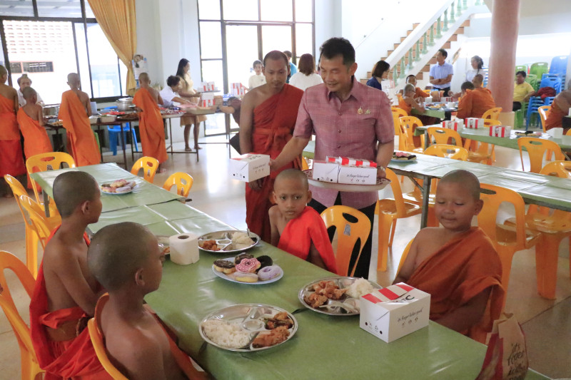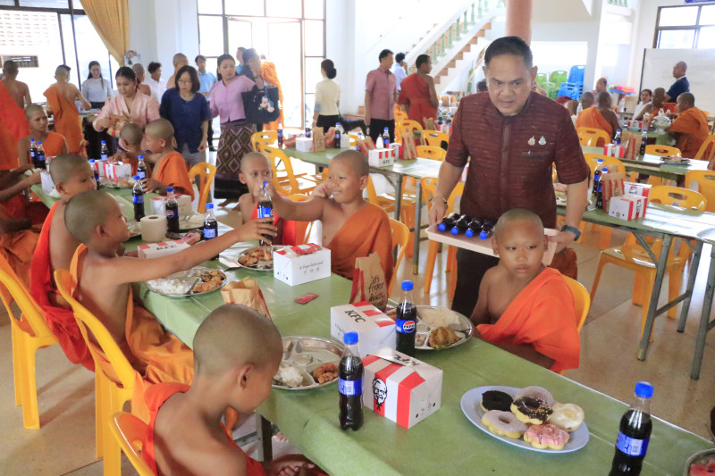 วันที่ 26 สิงหาคม 2568 เวลา 10.30 น. นายวีระชัย ประเสริฐโส รองผู้ว่าราชการจังหวัดสุรินทร์ พร้อมด้วยนายทวีภัทร เหล่าบรรเทาสหกรณ์จังหวัดสุรินทร์และหน่วยงานในสังกัดกระทรวงเกษตรและสหกรณ์ในจังหวัดสุรินทร์ ร่วมถวายเพลไก่ KFC จำนวน 80 กล่อง น้ำปานะ สามเณรที่บรรพชาอุปสมบทเฉลิมพระเกียรติเพื่อถวายเป็นพระราชกุศลแด่สมเด็จพระนางเจ้าสิริกิติ์ พระบรมราชินีนาถ พระบรมราชชนนีพันปีหลวง ซึ่งได้บรรพชาตั้งแต่วันที่ 23-29 สิงหาคม 2568 ณ วัดศรีรัตนาราม ต.นอกเมือง อ.เมืองสุรินทร์ จังหวัดสุรินทร์