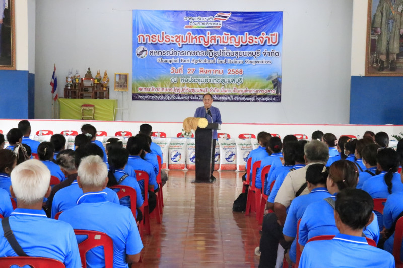 วันที่ 27 สิงหาคม 2568 เวลา 09.00 น. นายทวีภัทร เหล่าบรรเทา สหกรณ์จังหวัดสุรินทร์ เป็นประธานในพิธีเปิดการประชุมใหญ่สามัญของสหกรณ์การเกษตรปฏิรูปที่ดินชุมพลบุรี จำกัด สหกรณ์มีทุนดำเนินงานทั้งสิ้น จำนวน 354,812,355.17 บาท และในรอบปีสหกรณ์ ดำเนินธุรกิจ 6 ด้าน มีปริมาณธุรกิจรวมทั้งสิ้น จำนวน 164,220,538.48 บาท ประกอบด้วยการให้สินเชื่อกับสมาชิก จำนวน 114,139,484.00 บาท จัดหาสินค้ามาจำหน่าย จำนวน 3,833,540.00 บาท รวบรวมผลผลิต จำนวน 13,806,563.00 บาท จัดหาสินค้ามาจำหน่าย จำนวน 3,833,540.00 บาท แปรรูปผลิตผลเมล็ดพันธุ์ จำนวน 3,944,588.50 บาท แปรรูปข้าวสาร จำนวน 2,254,270 บาท ธุรกิจให้บริการและส่งเสริมการเกษตร จำนวน 277,000.00 บาท และเงินรับฝาก จำนวน 10,246,819.96 บาท ผลการดำเนินงานมีกำไรสุทธิ 5,032,977.37 บาท ณ หอประชุมอำเภอชุมพลบุรี อำเภอชุมพลบุรี จังหวัดสุรินทร์