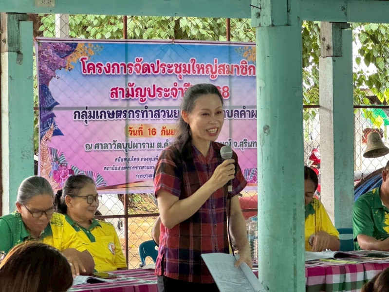 วันที่ 16 กันยายน 2568 นางสาวปริศนา ฟักนวล ผู้อำนวยการกลุ่มส่งเสริมสหกรณ์ 6 พร้อมคณะ เข้าร่วมประชุมใหญ่สามัญประจำปี 2567 กลุ่มเกษตรกรทำสวนยางพาราตำบลคำผง ณ วัดบุปผาราม ต.คำผง อ.โนนนารายณ์ จ.สุรินทร์ โดยมีสมาชิกเข้าร่วมประชุมจำนวน 102 คน จากสมาชิกทั้งหมด 145 คน ในรอบปีบัญชีสิ้นสุด 30 เมษายน 2568 กลุ่มฯ มีทุนดำเนินงาน ทั้งสิ้น จำนวน 1,233,108.76 บาท ผลการดำเนินงานมีกำไรสุทธิ จำนวน 219,055.49 บาท ที่ประชุมได้พิจารณาจัดสรรกำไรสุทธิประจำปีกำหนดแผนการดำเนินงาน และกำหนดวงเงินดำเนินกิจการประจำปี 30 เมษายน 2569 ทั้งนี้ได้แนะนำเกี่ยวกับการดำเนินงานของกลุ่ม การมีส่วนร่วมในการดำเนินธุรกิจ การควบคุมภายใน และแนะนำให้คณะกรรมการดำเนินงานให้เป็นไปตามแผนงาน ข้อบังคับ ระเบียบ และกฎหมายอื่นที่เกี่ยวข้อง