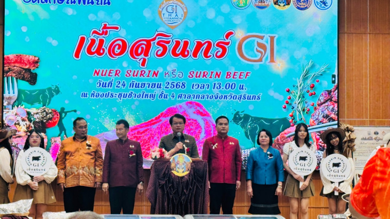 วันที่ 24 กันยายน 2568 นางสาวศุลีพร ฉัตรเฉลิมเดช นักวิชาการสหกรณ์ชำนาญการ พร้อมด้วย นางสาวพิชญาภา แสงดาว นักวิชาการสหกรณ์ กลุ่มส่งเสริมและพัฒนาธุรกิจสหกรณ์ ร่วมกิจกรรมงานสิ่งบ่งชี้ทางภูมิศาสตร์ไทย ( Geographical Indication : GI ) สินค้า “เนื้อสุรินทร์” เพื่อให้ได้รับการขึ้นทะเบียน เป็นสินค้าสิ่งบ่งชี้ทางภูมิศาสตร์ และกรมทรัพย์สินทางปัญญา ตามคู่มือปฏิบัติงานและแผนการควบคุมตรวจสอบ GI ณ ห้องประชุมช้างใหญ่ ชั้น 4 ศาลากลางจังหวัดสุรินทร์ ตำบลนอกเมือง อำเภอเมืองสุรินทร์ จังหวัดสุรินทร์