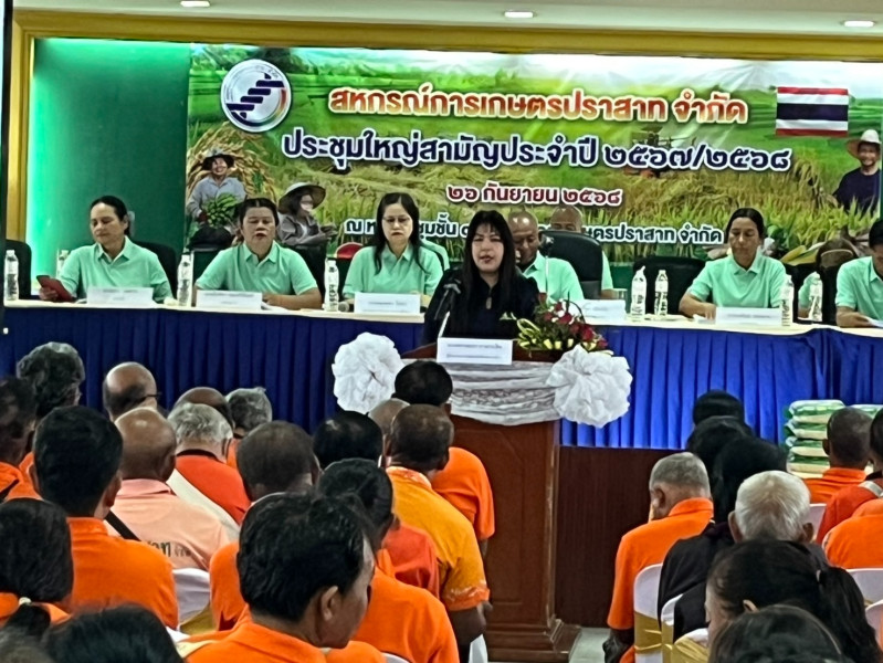 จากนั้นเวลา 11.00 น. นายทวีภัทร เหล่าบรรเทา สหกรณ์จังหวัดสุรินทร์ ประธานในพิธีฯ เปิดการประชุมใหญ่สามัญประจำปี 2567 ของสหกรณ์การเกษตรปราสาท จำกัด พร้อมด้วยนางพรรณภา หวลระลึก ผู้อำนวยการกลุ่มส่งเสริมสหกรณ์ 2 และคณะ โดยมีผู้แทนสมาชิกเข้าประชุม 206 คน จากผู้แทนสมาชิกทั้งหมด 208 คน ประธานในพิธีได้กล่าวให้โอวาทเพื่อเป็นขวัญกำลังใจให้กับสมาชิก มอบรางวัลให้แก่สมาชิกที่ชำระหนี้ดี และมอบเงินให้สมาชิกที่ประสบภัยการสู้รบตามแนวชายแดนไทย-กัมพูชา สำหรับปีบัญชีสิ้นสุดวันที่ 30 มิถุนายน 2568 สหกรณ์มีทุนดำเนินงานทั้งสิ้น 690,303,569.51 บาท กำไรสุทธิประจำปี 15,466,111.06 บาท ในการนี้ได้แนะนำการมีส่วนร่วมของสมาชิก การระดมทุนภายในและแนวทางการช่วยเหลือสมาชิกที่เป็นหนี้ค้างของสหกรณ์ ณ ห้องประชุมชั้น 3 สหกรณ์การเกษตรปราสาท จำกัด ตำบลกังแอน อำเภอปราสาท จังหวัดสุรินทร์