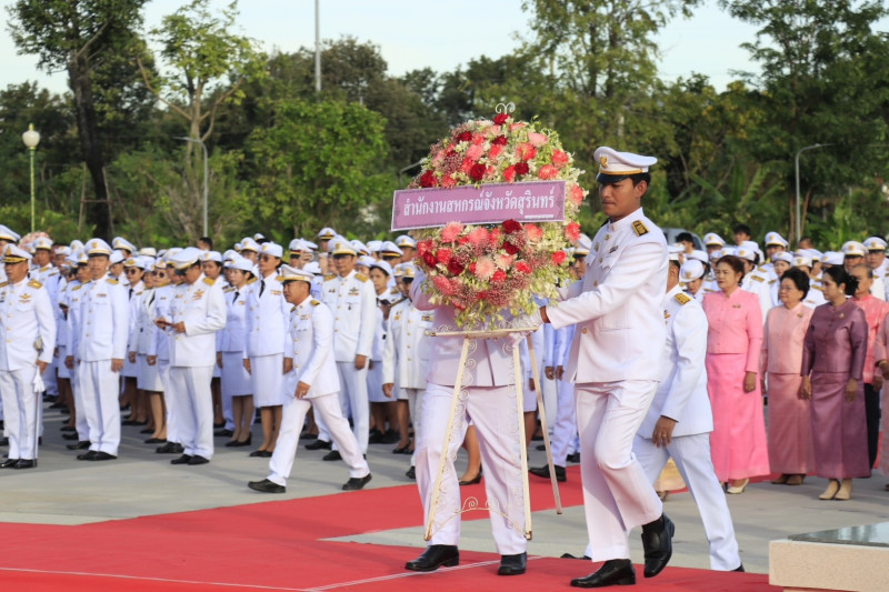 วันที่ 23 ตุลาคม 2568 นายทวีภัทร เหล่าบรรเทา สหกรณ์จังหวัดสุรินทร์ พร้อมด้วยกลุ่มส่งเสริมสหกรณ์ 1 เเละ กลุ่มส่งเสริมสหกรณ์ 2 ร่วมพิธีวันปิยมหาราช จังหวัดสุรินทร์ ประจำปี พ.ศ. 2568 โดยมีนายประภาส ศรีจันทร์เวียง รองผู้ว่าราชการจังหวัด รักษาราชการเเทนผู้ว่าราชการจังหวัดสุรินทร์ เป็นประธานในพิธี ณ บริเวณพระบรมราชานุสาวรีย์ พระบาทสมเด็จพระจุลจอมเกล้าเจ้าอยู่หัว ด้านหน้าอาคารศาลากลางจังหวัดสุรินทร์ ตำบลนอกเมือง อำเภอเมืองสุรินทร์ จังหวัดสุรินทร์
