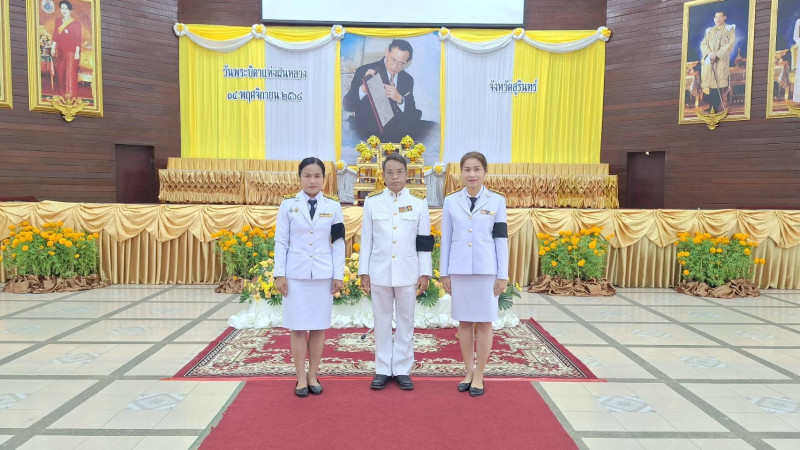 วันที่ 14 พฤศจิกายน 2568 เวลา 07.00 น. ข้าราชการ พนักงานราชการ สังกัด กลุ่มส่งเสริมสหกรณ์ 3,4,5 สำนักงานสหกรณ์จังหวัดสุรินทร์ เข้าร่วมพิธีวางพานพุ่มดอกไม้สดเนื่องในวันพระบิดาแห่งฝนหลวง ประจำปี 2568 ณ หอประชุมสุรินทร์วัฒนา วิทยาลัยอาชีวศึกษาสุรินทร์ อำเภอเมืองสุรินทร์ จังหวัดสุรินทร์ โดยมีนายประภาส ศรีจันทร์เวียง รองผู้ว่าราชการจังหวัด รักษาราชการแทนผู้ว่าราชการจังหวัดสุรินทร์ เป็นประธานในพิธี