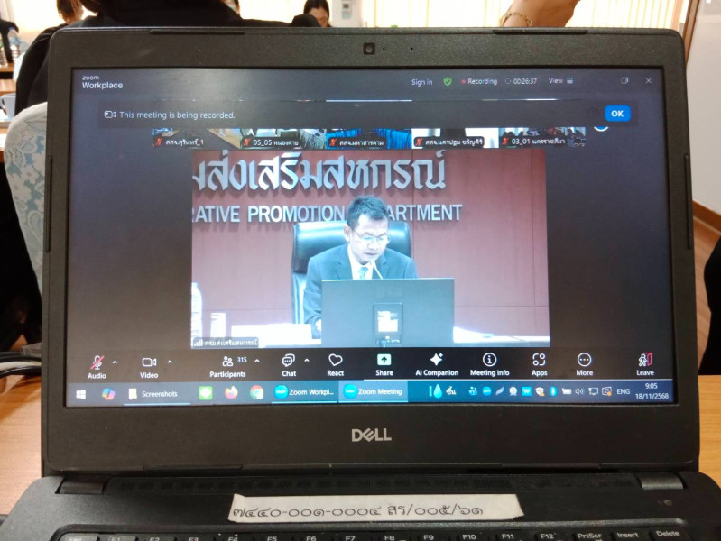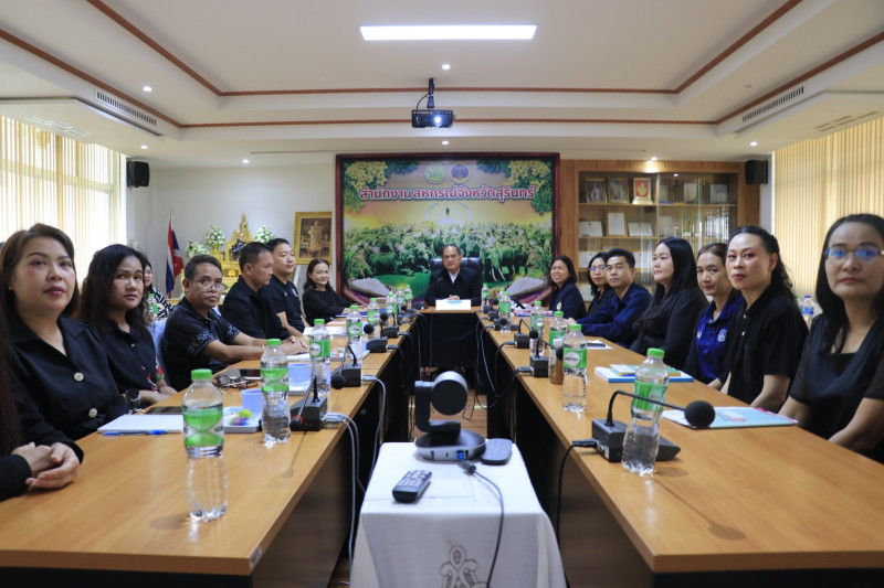 วันที่ 18 พฤศจิกายน 2568 เวลา 09.00 น. นายมนัส เทพรักษ์ รองอธิบดีกรมส่งเสริมสหกรณ์ เป็นประธานพิธีเปิดการประชุมชี้แจงผลการจัดชั้นความเข้มแข็งสหกรณ์และกลุ่มเกษตรกร ประจำปี พ.ศ. 2568 และกรอบการประเมินผลจัดชั้นความเข้มแข็งสหกรณ์และกลุ่มเกษตรกร ประจำปี พ.ศ. 2569 ผ่านระบบ Zoom โดยนายทวีภัทร เหล่าบรรเทา สหกรณ์จังหวัดสุรินทร์ พร้อมด้วยบุคลากรสำนักงานสหกรณ์จังหวัดสุรินทร์ เข้าร่วมรับฟังและสอบถามประเด็นเกี่ยวกับการจัดชั้นความเข้มแข็งฯ ณ ห้องประชุมสำนักงานสหกรณ์จังหวัดสุรินทร์ จังหวัดสุรินทร์