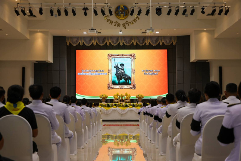 วันที่ 28 ธันวาคม 2568 เวลา 07.19 น. ข้าราชการและพนักงานราชการ กลุ่มจัดตั้งและส่งเสริมสหกรณ์ ร่วมพิธีสวดพระพุทธมนต์ถวายพระราชกุศล และพิธีวางพานพุ่มดอกไม้ถวายราชสักการะ เนื่องในวันสมเด็จพระเจ้าตากสินมหาราช โดยนายจำเริญ แหวนเพ็ชร ผู้ว่าราชการจังหวัดสุรินทร์ มอบหมายให้นายประภาส ศรีจันทร์เวียง รองผู้ว่าราชการจังหวัดสุรินทร์ เป็นประธานในพิธิ พร้อมด้วยข้าราชการศาล ทหาร ตำรวจ หัวหน้าส่วนราชการระดับจังหวัดและอำเภอ ข้าราชการ พนักงาน และเจ้าหน้าที่ เข้าร่วมพิธีอย่างพร้อมเพรียง ณ หอประชุมจังหวัดสุรินทร์