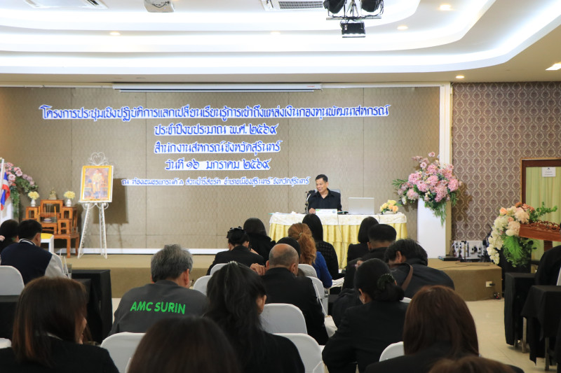 วันที่ 16 มกราคม 2569 นายสมบัติ อยู่สุข สหกรณ์จังหวัดสุรินทร์ เป็นประธานในพิธีเปิดการประชุมเชิงปฏิบัติการแลกเปลี่ยนเรียนรู้การเข้าถึงแหล่งเงินกองทุนพัฒนาสหกรณ์ ประจำปีงบประมาณ พ.ศ. 2569 พร้อมบรรยายพิเศษในหัวข้อเรื่อง “ นโยบายและการขับเคลื่อนการบริหารกองทุนพัฒนาสหกรณ์ 2569 ” ณ ห้องประชุมเอมอร แกรนด์ A สวนป่ารีสอร์ท ต.เฉนียง อ.เมืองสุรินทร์ จ.สุรินทร์ ผู้เข้าร่วมประชุมประกอบด้วย ประธานกรรมการสหกรณ์ กรรมการสหกรณ์ ผู้จัดการสหกรณ์ เจ้าหน้าที่สหกรณ์ ข้าราชการและพนักงานราชการ สำนักงานสหกรณ์จังหวัดสุรินทร์ที่ปฏิบัติงานเกี่ยวข้องกับกองทุนพัฒนาสหกรณ์ รวมจำนวน 74 ราย วัตถุประสงค์เพื่อให้ความรู้ ความเข้าใจเกี่ยวกับแนวทางการบริหารจัดการเงินกองทุนพัฒนาสหกรณ์ให้กับสหกรณ์ที่มีสิทธิกู้เงินกองทุนพัฒนาสหกรณ์ให้ความรู้ ความเข้าใจเกี่ยวกับการจัดทำเอกสารประกอบการขอกู้เงินกองทุนพัฒนาสหกรณ์ ของสหกรณ์ และแลกเปลี่ยนเรียนรู้ปัญหาและอุปสรรคต่าง ๆ ในการดำเนินงานของสหกรณ์ เพื่อให้สหกรณ์สามารถนำมาปฏิบัติงานได้อย่างถูกต้อง และเพิ่มโอกาสให้สหกรณ์เข้าถึงแหล่งเงินทุนเพิ่มขึ้น และรับทราบปัญหาและอุปสรรคการดำเนินงานในการสนับสนุนเงินกองทุนพัฒนาสหกรณ์แก่สหกรณ์ เพื่อเป็นแนวทางในการปรับปรุงเพื่อเพิ่มประสิทธิภาพในการบริหารจัดการเงินกองทุนพัฒนาสหกรณ์