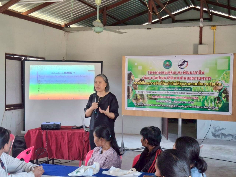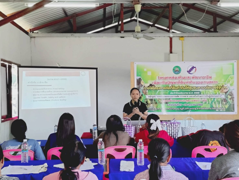 วันที่ 29 มกราคม 2569 เวลา 09.00 น. สำนักงานสหกรณ์จังหวัดสุรินทร์ โดยกลุ่มส่งเสริมและพัฒนาธุรกิจสหกรณ์ ได้ดำเนินโครงการส่งเสริมและพัฒนาอาชีพเพื่อแก้ไขปัญหาที่ดินทำกินของเกษตรกร ภายใต้โครงการจัดที่ดินทำกินให้ชุมชนตามนโยบายรัฐบาล ประจำปีงบประมาณ พ.ศ. 2569 หลักสูตร “การวางแผนระบบการผลิต การตลาด และเสริมทักษะการเป็นผู้ประกอบการ”เป้าหมายประกอบด้วย สมาชิกสหกรณ์การเกษตรประดู่สะโนพัฒนา จำกัด รุ่นที่ 3 พื้นที่หนองหวายสาธารณประโยชน์ จำนวน 15 คน เพื่อสร้างความรู้การวางแผนการผลิตและการตลาด เสริมทักษะการเป็นผู้ผลิตสินค้าที่ได้รับมาตรฐานความปลอดภัย การตลาดนำการผลิตการผลิตตามความต้องการของตลาดการเพิ่มช่องทางตลาดสินค้าเกษตรตลาดสินค้าเกษตรออนไลน์ ณ ศาลาประชาคมบ้านขนวน หมู่ที่ 3 ตำบลประดู่ อำเภอสำโรงทาบ จังหวัดสุรินทร์